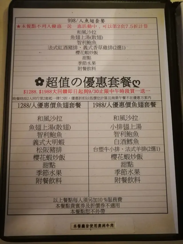 魚翅上湯(散翅)988元套餐 & 1288元套餐