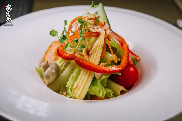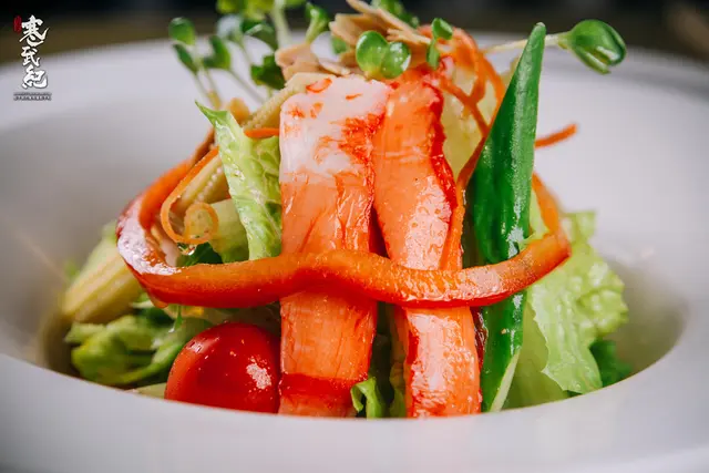 蟹肉棒加上大量的蘿蔓萵苣還有玉米筍,醬汁用上了柳橙汁、檸檬汁調製,吃起來酸甜開胃,不帶油膩,很清爽。