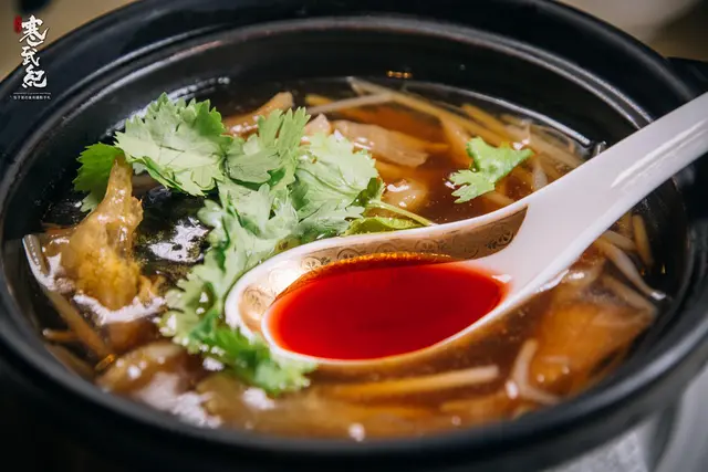 品嚐魚翅建議先喝幾口湯嘗一下原味的高湯和原味的魚翅,之後在依照自己喜歡的口味加入適量的紅醋和香菜,風味會變得大為不同!