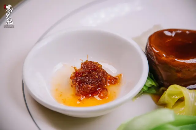 吃到鮑魚的時候服務人員拿來了一罐店家自製的XO醬,裡面料好實在,放入了大量的干貝、金鉤辣椒、金華火腿.....等等頂級的香料食材~~