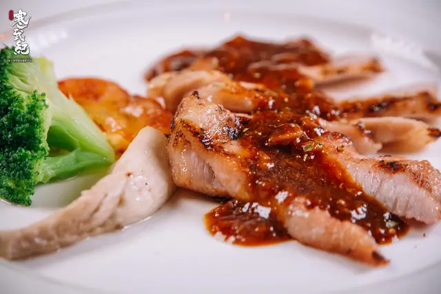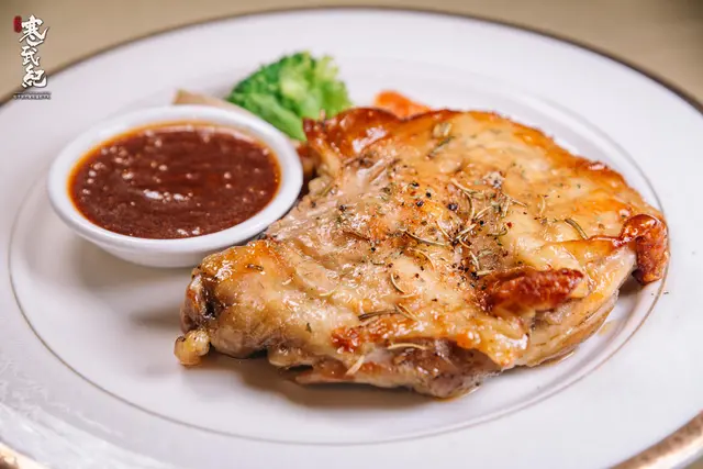 佐上香草的義式香煎雞排,多汁雞皮金黃脆口,搭配特製醬汁很夠味。