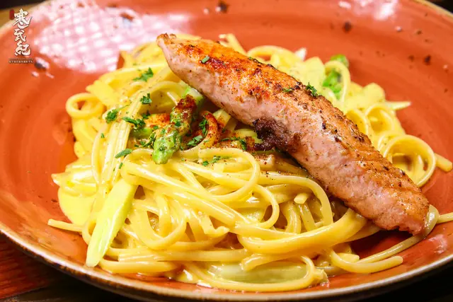 鮭魚蘆筍蛋奶麵 晚餐限定 450元