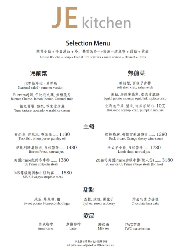 JE從九月開始推出全套餐的服務,完整的菜單如下,價格都相當的合理,相當適合家庭聚餐或是情侶之間的約會~~