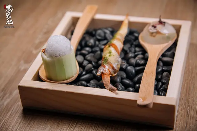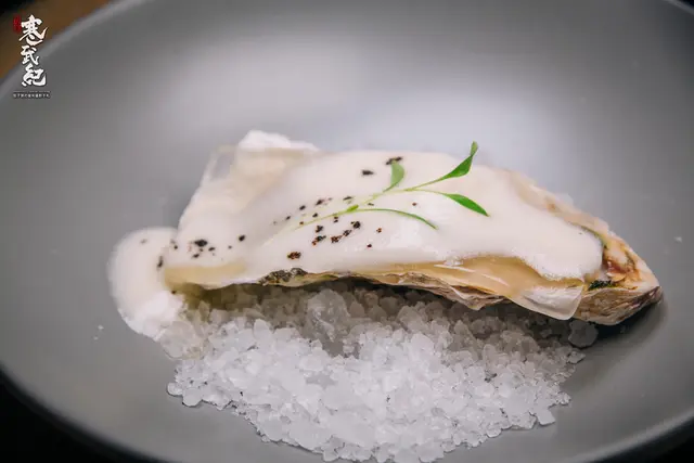 煙燻過的大聲毫,加上一片薄薄的柴魚高湯凍,頂上灌注了一些蘋果慕司,入口是一種很微妙的味道,生蠔本身帶些大海的鹹香佐上柴魚滋味更濃郁,配上蘋果慕司卻瞬間將滋味合為一體了,很神奇的料理混搭魔法,法餐精神一覽無遺。