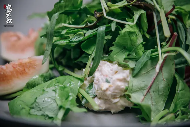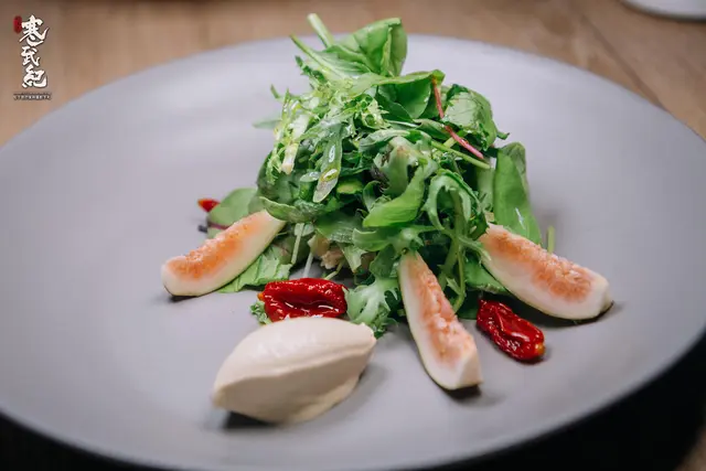 搭上新鮮無花果和大量的芝麻葉,將蟹肉和冰淇淋混入,滿滿的蟹味,口感很CREAMY的一品沙拉。