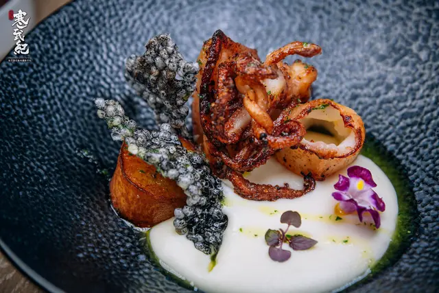 這透抽重口味,包子爸非常欣賞!吃得出食材的新鮮度,配上馬鈴薯慕司和脆口的墨魚汁米餅,一個字「讚」!
