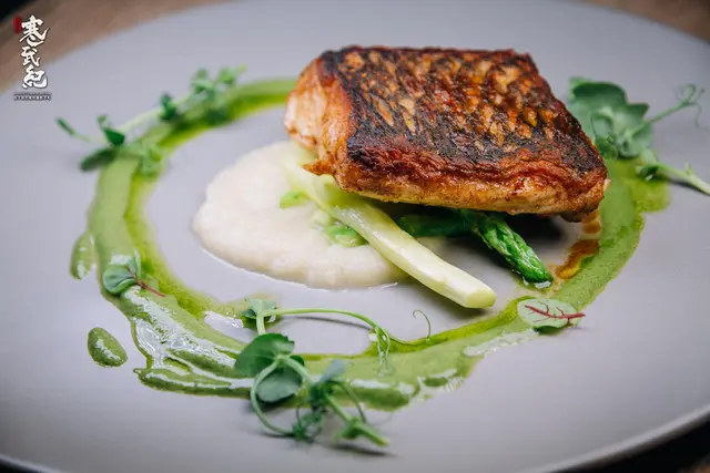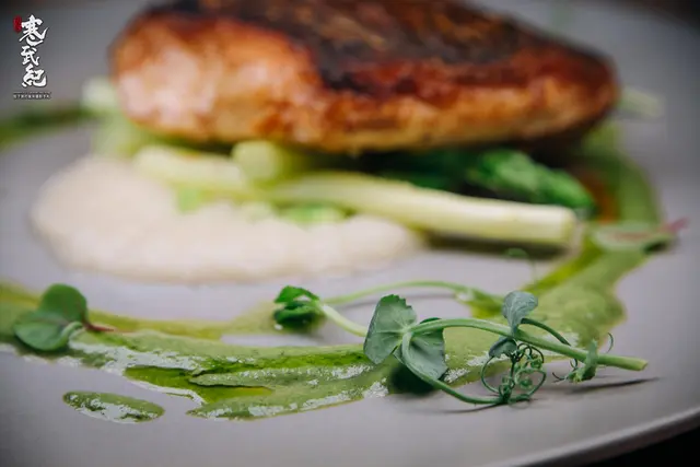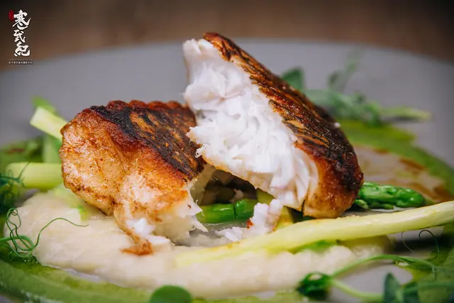 用乾煎的方式烹調成魚排搭配上洋蔥泥跟香菜油,清爽細緻,口入餘韻不絕。