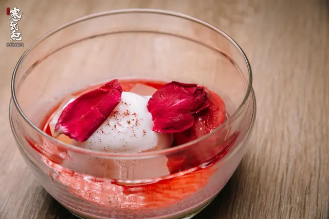 包子爸對這道甜點最大的印象就是撲鼻而來的玫瑰香氣!這玫瑰花香實在太搶鏡~~哈哈!