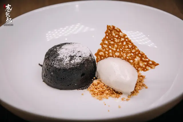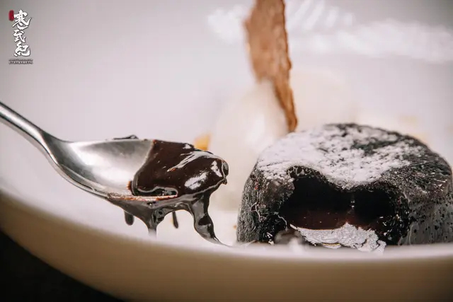 汩汩流出的濃純巧克力實在太迷人了!搭配上手工自製冰淇淋和焦糖脆片,浪漫好滋味,濃的化不開。