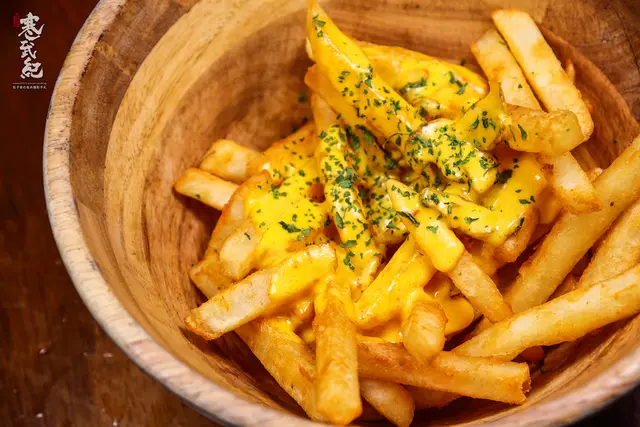 蒜香濃郁,還拌入了大量起司奶油,搭配上金黃酥脆的薯條,光看照片都想流口水~