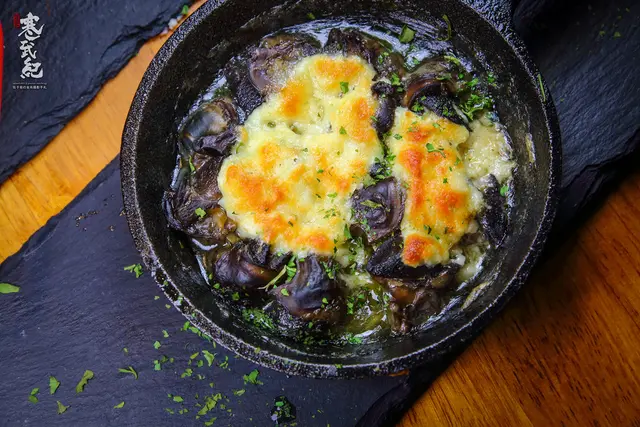 螺肉口感比較偏軟,沒有想像中的脆度和嚼勁,也許是刻意為之?搭配焗烤起司,風味還是不錯!