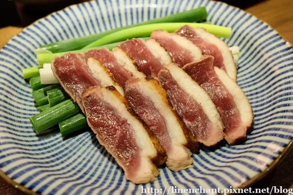 完全沒腥味的櫻桃鴨,切的小有厚度所以口感我非常喜歡~~搭配三星蔥的蔥香氣,我真的覺得很好吃!!!!