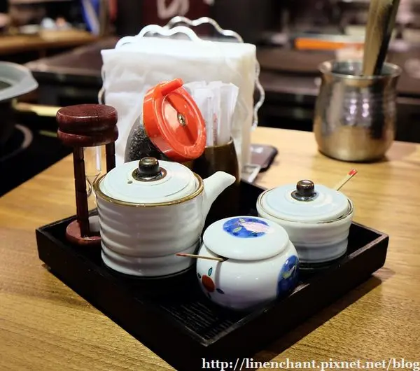 除了每種鍋搭配的蘸醬不一樣外,也有提供一些基本的蘸醬...我記得有蝦味辣油、蒜泥、柚子胡椒...其中柚子胡椒整個讓葉子興奮到不行,她說她超愛的啦!!!