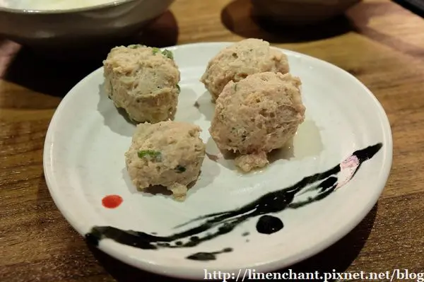 我跟葉子都有分食到彼此的丸類,有淡淡的蔥香丸子本身的口感還算不錯....只是我一直搭不到吃起來最對味的醬汁,每個丸子都換一個醬汁搭配~~吃的有夠忙啊!!