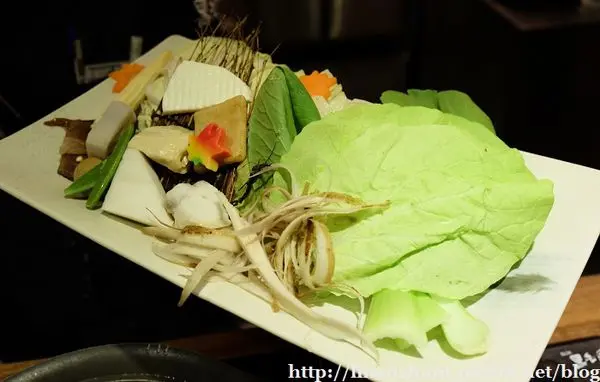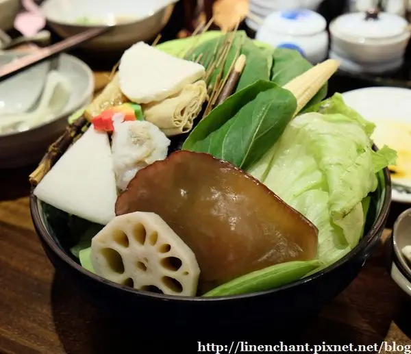 葉子的宜蘭產六白黑毛豚涮涮鍋菜盤看起來比較小份,但實際上搭配的配菜都差不多唷....