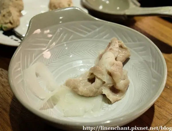 我跟葉子點的鍋不一樣的地方是,豬肉鍋的就是豬肉丸...我記得南蠻蔥鴨鍋的鴨肉丸裡面好像還有加別的....又忘了!!XD