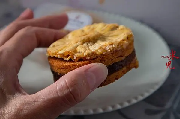 從側面看得出整個結構是很厚實的,師傅很捨得用料!這酥餅真的是非常好吃,我覺得裡頭應該有堅果粉之類的成分,做法有點像法國布列塔尼酥餅,酥到掉渣的那種酥餅,因為奶油也用得很好,整個香氣聞起來就是舒服!