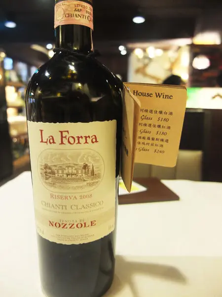 紅酒的旁邊掛了一張小吊牌,將店內販售的酒品條列其中