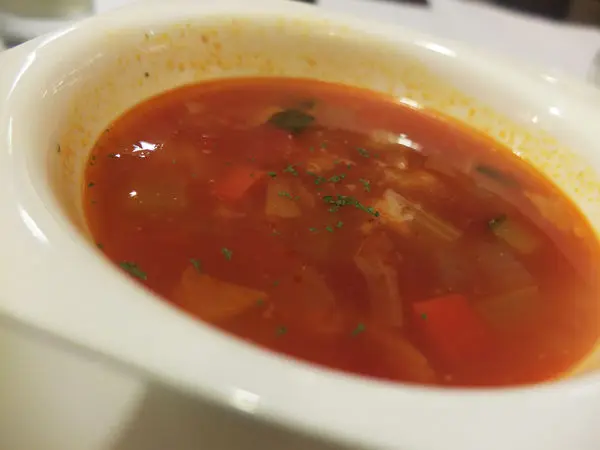同事點的~ 從他一口接一口的動作、一邊喝一邊說「公司附近居然有這麼好喝的南瓜濃湯」... 應該是好喝喔!蕃茄雞肉蔬菜湯