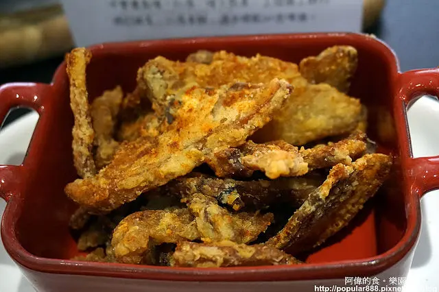 這道是非常棒的下酒菜,它把豬耳朵裹粉炸過,外表很香酥,裡面的肉帶著脆骨與膠質,相當棒!