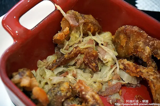 底下還有一些酸菜絲,有點像吃德國豬腳附的,不過並不酸,我覺得口味稍淡了些,但也算不錯!