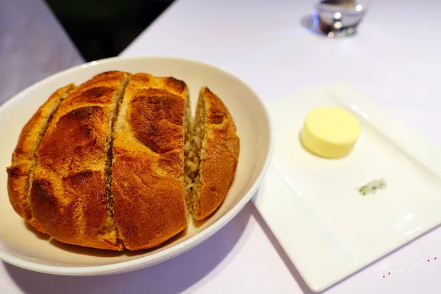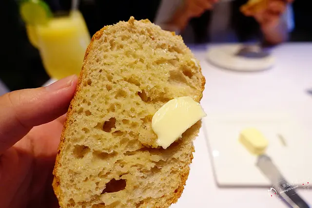麵包都是現烤上桌的,小心燙手,所以塗上奶油很快就融化了。