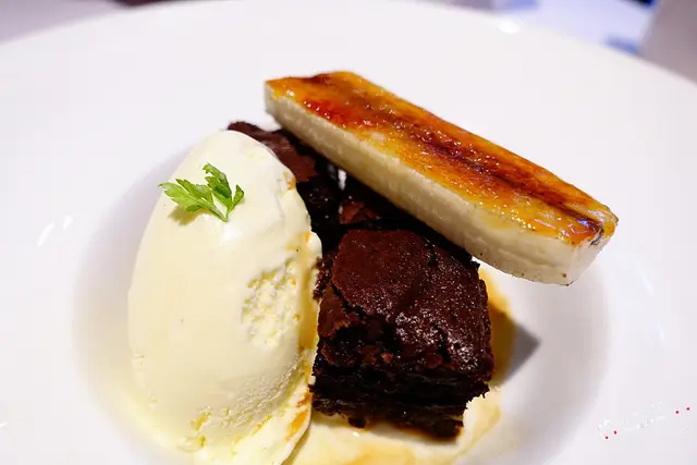 甜點分別是巧克力布朗尼 & 冰淇淋聖代
