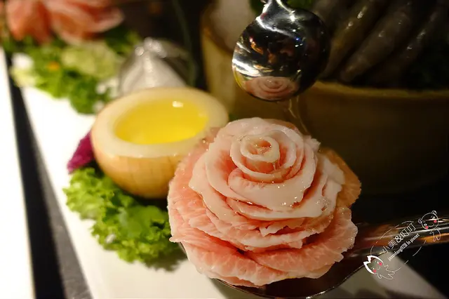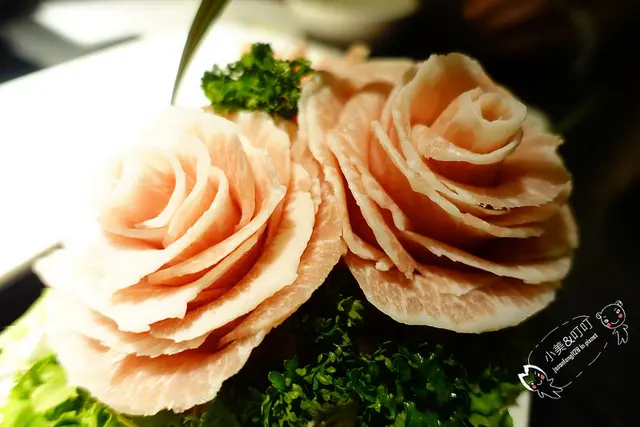 三朵玫瑰花的松阪豬呈現在眼前,是很驚豔,荷包也很驚豔~真的是一道藝術品