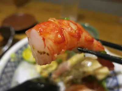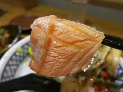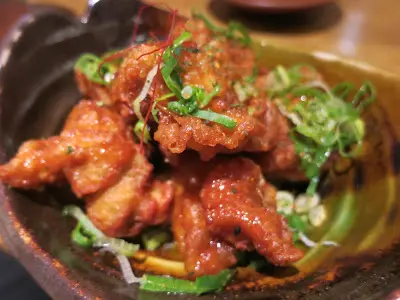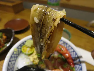 在刺身飯吃到一半上場,一客大約有六、七件的炸雞新鮮熱辣,皮脆肉嫩、肉汁豐盈,面頭澆上七味粉和柚子味的醬汁能為它減膩,每人吃上三件也無負擔。