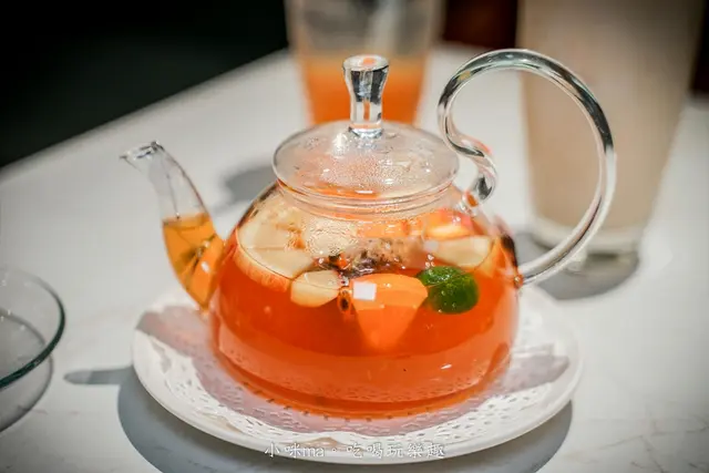 非常有誠意的水果茶,裡面放滿了新鮮水果增添風味,整體的口感比較濃一點,可以喝到滿滿的水果香氣,裡面有放茶包,還可以回沖呢