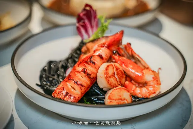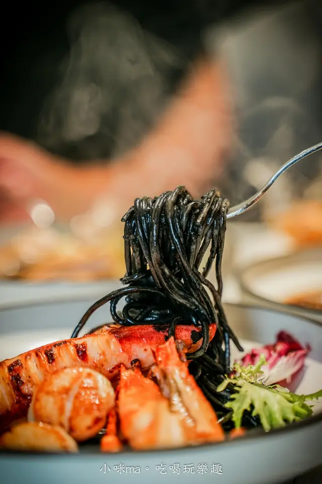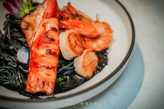 墨魚義大利麵Q彈好吃,墨魚汁淡淡的鹹香增添了層次,吃起來雖然嘴巴會黑黑的,但還是抵擋不了這個美味,哈哈