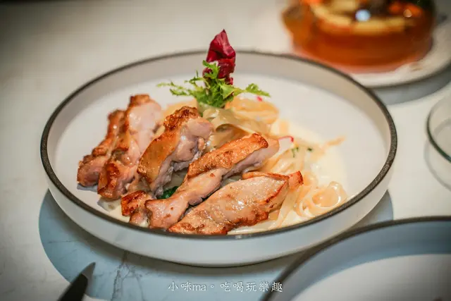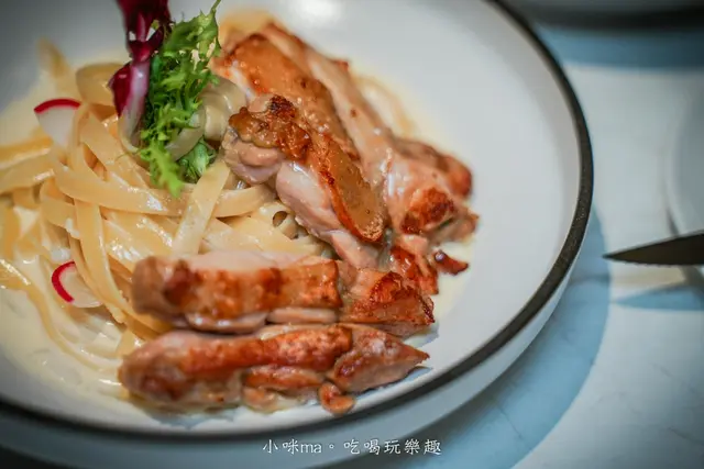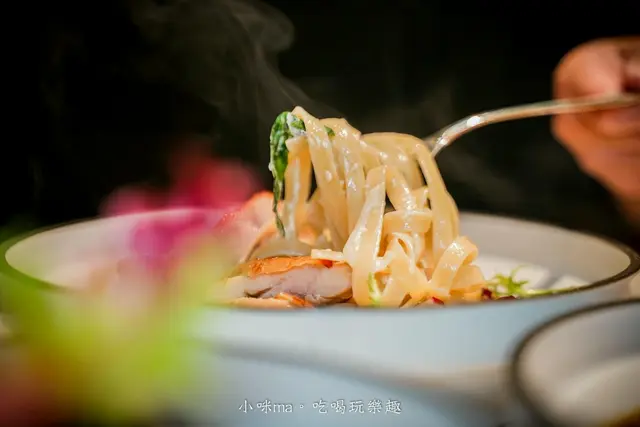 義大利麵的麵條有細麵、寬麵、筆管麵(部分)可以選,寬麵都巴滿了醬汁,吃起來很有咀嚼的層次,雞腿排的外皮煎到酥脆,雞肉肉質彈嫩,真的無可挑剔