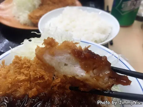 每一塊豬排皆是如此厚實多汁,搭配上甜中帶點酸味的豬排醬汁,更顯得爽口,