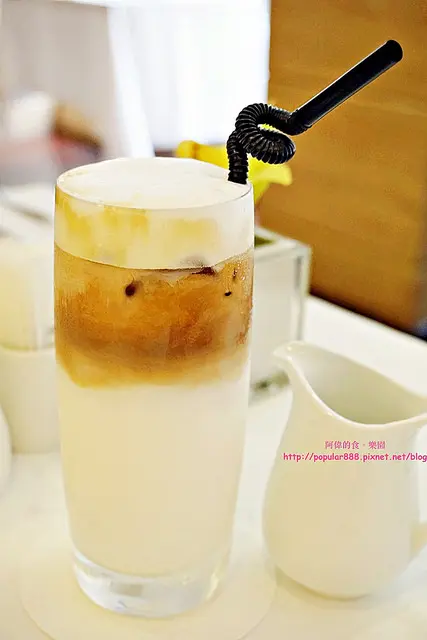 正式上餐點前,阿偉先要了一杯冰拿鐵,奶泡細緻綿密,咖啡香味迷人,不加糖漿就好喝