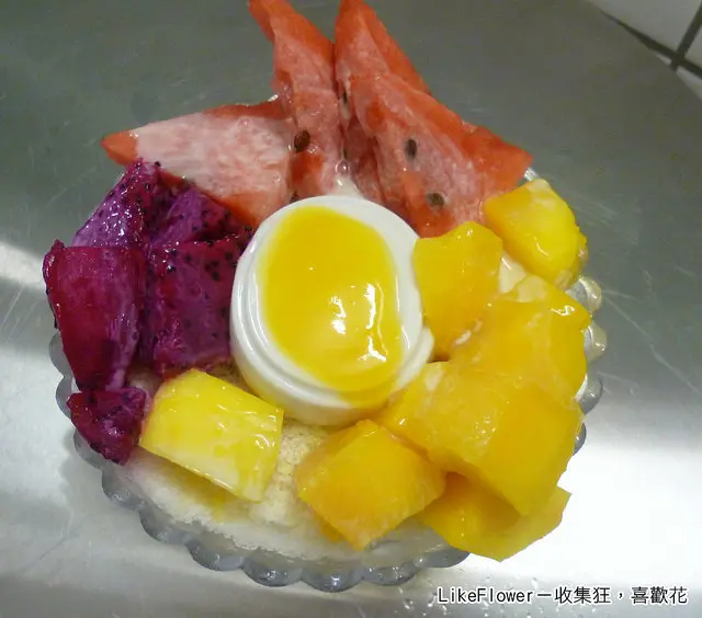 等了一會我的季節水果冰終於上桌了,三種夏天最受歡迎的嬌寵一次集合