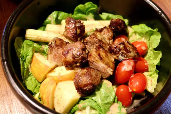 骰子牛排帶著些嚼勁,與焦香的外皮吃來,很享受肉香在口中散發的滋味。