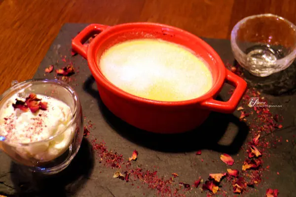 另外橙酒的香氣,在溫度的提昇下散發迷人的香氣,使這布蕾有非常美妙的滋味。