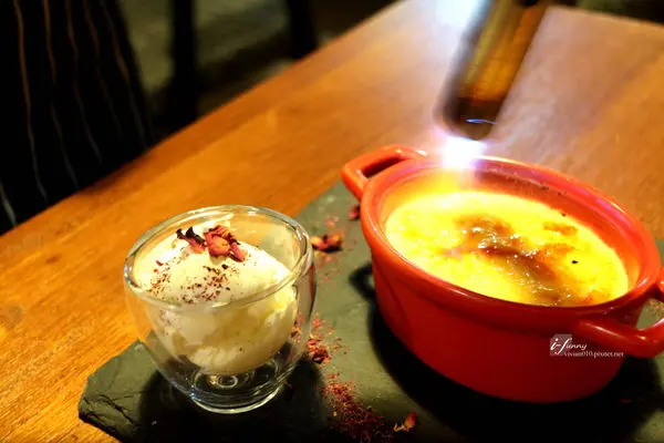 上桌後,服務人員才會現場<烤布蕾>,氣氛也隨著溫度而上升。