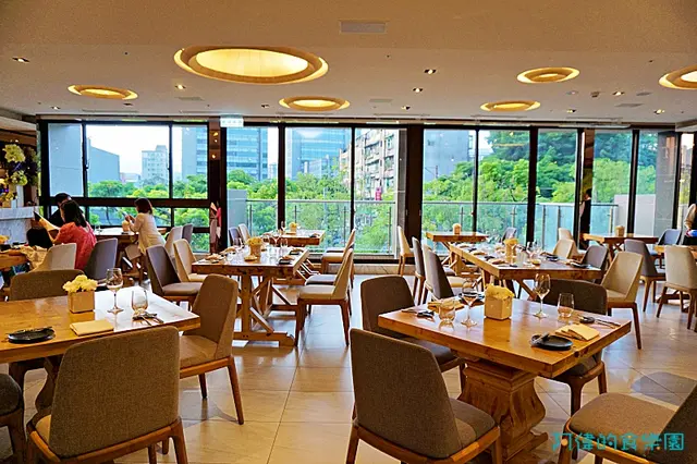 窗外可看到路樹的上端,茂密的綠色枝葉讓用餐心情更好。
