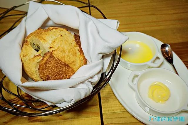 首先上桌的是餐前麵包,這麵包真是超級好吃,又香又軟,抹上一點牛油或是沾著橄欖油吃都很對味。