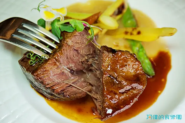 用舒肥法使得牛肉極為軟嫩,醬汁與配菜也都很甜很好吃。
