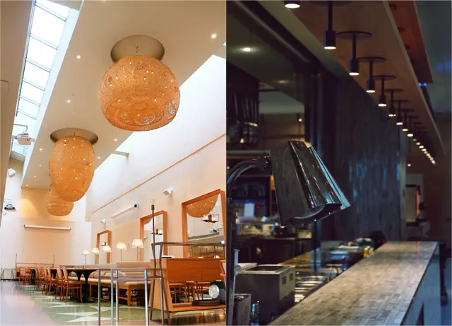▲ 靠內側的用餐區,挑高與天窗設計,加上巨型竹燈,舒適簡約。