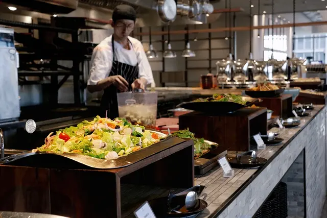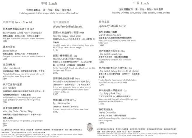 中午用餐形式是以半自助餐 ( Semi-buffet) 提供,選擇一樣排餐主食,前菜、沙拉、湯品、甜點、飲料則是無限享用。