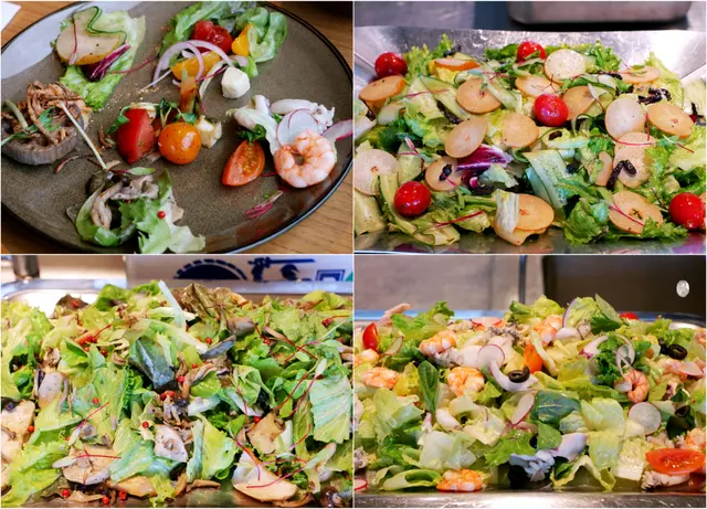 ▲ 醃漬鳥仔梨沙拉/炭烤野菇沙拉/尼斯海鮮沙拉