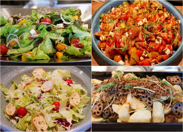 ▲ 柑橘沙拉/炭烤蕃茄起司沙拉/凱薩沙拉/香脆牛蒡山藥沙拉