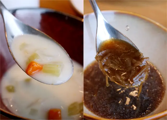 ▲▼ 湯品:巧達濃湯/洋蔥湯
