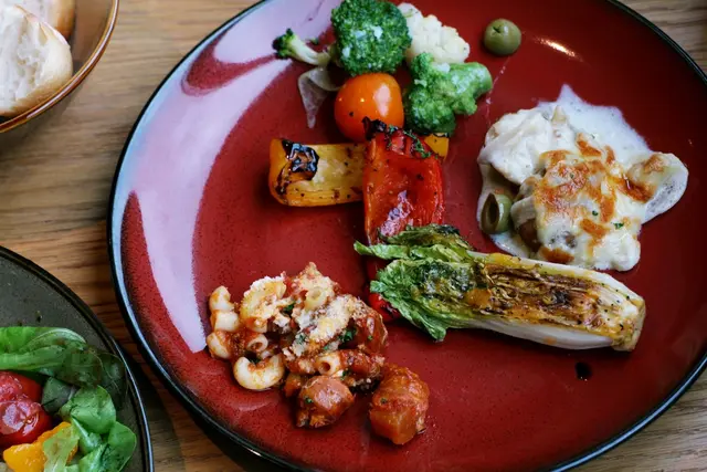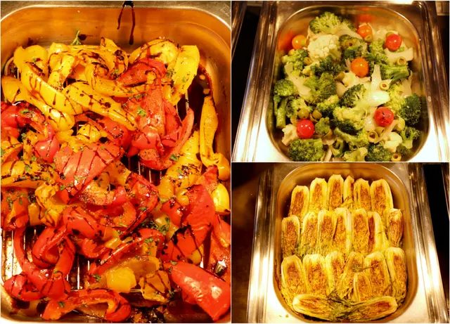 ▲ 熱盤區:娃娃菜/烤甜椒/焗烤洋芋/花椰菜/義大利肉醬香腸麵