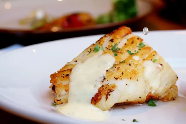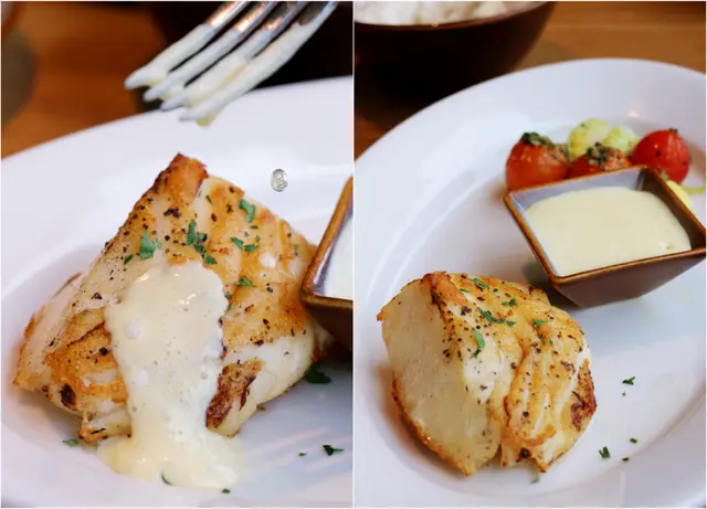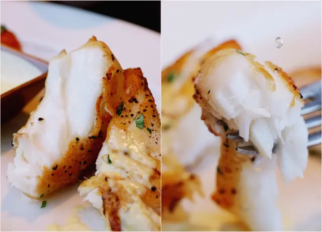 鱈魚的油花沒有預期中那麼豐厚,但肉質還是很軟嫩,表面煎得呈現金黃色,外脆內軟、香而不膩。