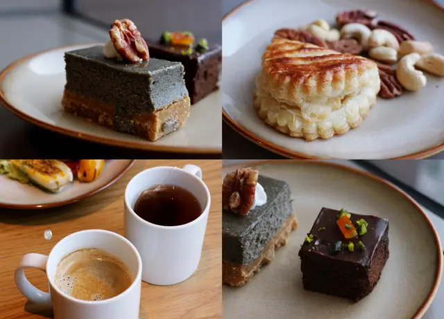 ▲ 黑芝麻重乳酪蛋糕/蘋果派/黑咖啡&紅茶/布朗尼