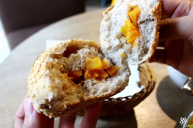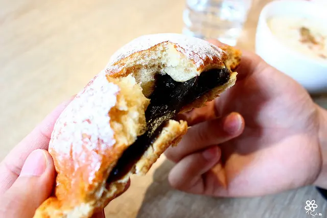 裡頭所包的黑糖麻薯吃起來有種黑糖粉粿的感覺